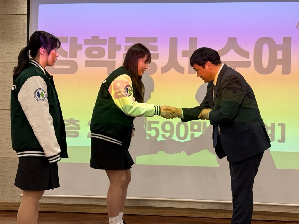 장학금을 받은 학생은 “큰 힘이 되는 지원에 감사드리며, 더욱 열심히 공부하여 사회에 기여하는 사람이 되겠다”고 소감을 전했습니다.
